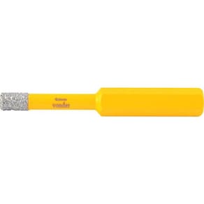Possui corpo reforçado em aço, ponta com revestimento diamantado e haste sextavada