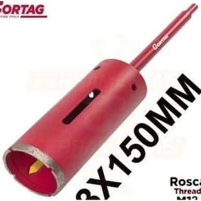 Altura total do Corpo: 164mm Altura útil/interna: 150mm Altura da camada diamantada: 8,0mm Espessura da camada diamantada: 2,5mm Rosca de encaixe: M12 Comprimento útil da haste: 160mm Encaixe Da Haste: 10mm Composição: Aço Carbono e diamante sintético. Ean: 7897451418996