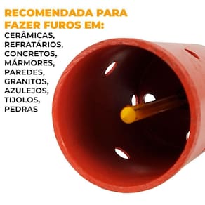 Recomendada para perfurar saídas para: ralos, esgotos, pias, tanques, instalação de torneiras, registros, passagens de dutos, tomadas elétricas, hidráulicas, cabos para informática, ar condicionado modelo split. RECOMENDADA PARA FAZER FUROS EM: