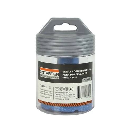 Descrição do Produto A Serra Copo Diamantada Starfer 64 mm é indicada para perfurações precisas em materiais duros, proporcionando acabamento limpo, seguro e profissional. Possui lâmina diamantada de alta resistência, ideal para aplicações de instalação e acabamento.