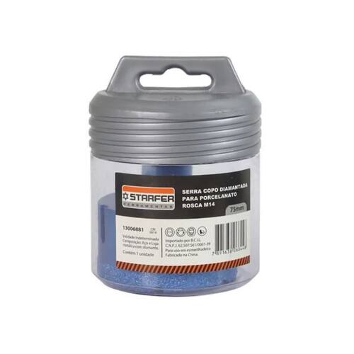Características Técnicas Diâmetro: 75 mm Tipo de corte: Diamantado Encaixe: Rosca M14 Equipamento compatível: Esmerilhadeira Material do corpo: Aço Marca: Starfer Código Interno: 13006881