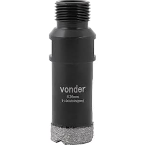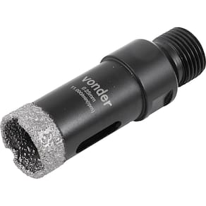 Serra copo diamantada para uso em telhas, tijolos, cerâmicas, azulejos, granito, mármore. Indicada para uso em esmerilhadeira com rosca interna M14 e rosca externa 1/2" BSP para máquinas estacionárias em marmoraria