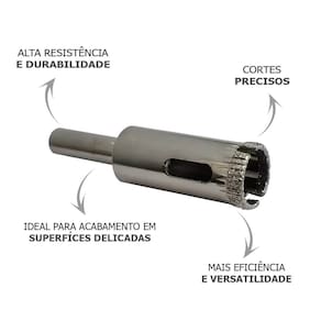 Indicação: Indicada para cortes em porcelanato, cerâmica e vidro (exceto vidro temperado). Ideal para uso em reformas, instalações de acessórios e projetos que exigem precisão.