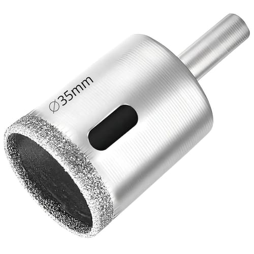 Diâmetro: 35mm Material: Liga metálica com ponta diamantada. Refrigeração: Sistema interno de resfriamento para maior vida útil. Compatibilidade: Uso com furadeiras e esmerilhadeiras. Aplicações: Cortes em porcelanato, cerâmica, granito, mármore e outros materiais duros.