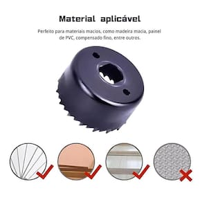 Material de Alta Qualidade: Fabricadas com materiais resistentes e duráveis, as serras copo deste conjunto são projetadas para oferecer desempenho consistente e duradouro. Compatibilidade Versátil: Adequadas para cortar uma variedade de materiais, incluindo madeira, gesso, PVC, plástico e muito mais, tornando-as ideais para uma ampla gama de projetos.