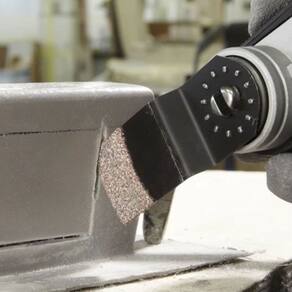 A lâmina é revestida com carboneto duro com lixa 50 para elevada resistência ao desgaste e, desta forma, uma duração extra longa. O sistema de fixação Starlock permite a rápida remoção e troca da lâmina em 3 segundos, sem precisar tocar na lâmina. O sistema de fixação produz a maior transferência de energia graças a uma ligação tridimensional apertada entre a máquina e o acessório.