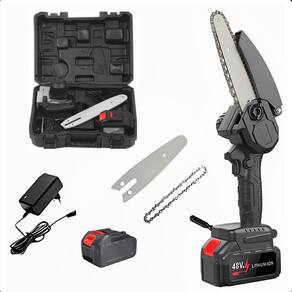 Serra elétrica 48v portátil e confiável Descrição do anúncio: Transforme suas atividades de jardinagem e corte com a mini serra elétrica 48v portátil bivolt. Projetada para proporcionar uma experiência ergonômica e confortável, esta motosserra é perfeita para cortes e podas em qualquer lugar, especialmente em áreas de difícil acesso. Com um motor escovado potente, garante um desempenho eficiente e rápido, minimizando o cansaço nas mãos. Ideal para serviços domésticos, jardinagem e podas simples, a mini serra elétrica oferece praticidade e mobilidade sem a necessidade de arrastar fios, graças à sua bateria inclusa.