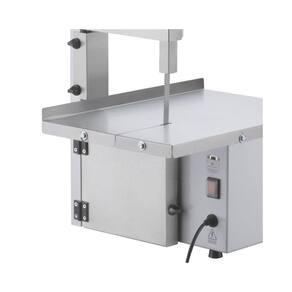 Construída em aço carbono com pintura epóxi branca, garante durabilidade e fácil higienização. Sua lâmina de 154 cm proporciona cortes rápidos e uniformes, enquanto a mesa fixa oferece estabilidade e segurança durante o manuseio.