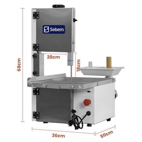 Características da Serra Fita Pequena Profissional 3 Em 1 com Moedor e Extrusor Sebem: Serra 3 em 1 Conta com serra, moedor e ensacadeira de Ideal para carnes e ossos Bocal para moer carne com bandeja e soquete Acompanha ponteira para ensacar e embutidos Serra fita com lâmina regulável de 1,55m Mesa e porta em inox Motor bivolt 1/3cv, podendo ser em 127 ou 220v Mesa de corte de 36 x 50 cm Altura de corte de 18 cm Largura de corte de 20 cm Proteção para lâmina com altura regulável Pintura epóxi resistente Descrição da Serra Fita Mesa Inox com Moedor Picador de Carne Profissional Sebem: A Serra de Bancada Sebem é uma solução compacta e profissional para uma variedade de cortes. Com sua lâmina de 1,55m, essa serra de fita oferece versatilidade para cortar carne, ossos e congelados, o modelo 3 em 1 da Sebem, conta também com o moedor/picador de carne e ponteira para fabricar embutidos, linguiças e salames. Sua estrutura é robusta em aço com pintura de alta temperatura na cor branca, garantindo sua durabilidade. Sua porta e mesa são fabricados em aço inox. A mesa de corte com área útil de 36 x 50 cm proporciona estabilidade durante o uso, enquanto a altura de corte de até 18 cm amplia suas possibilidades de trabalho. Equipada com um motor de 1/3 cv bivolt 127/220v , essa serra oferece potência confiável para enfrentar diversos cortes, inclusive ossos. A serra Sebem, possui proteção para a lâmina com tamanho regulável, lâmina de 1,55m de fácil reposição Especificações Técnicas da Máquina de Serra Fita com Picador/Moedor de Carne: Medidas do produto Cm : 68x36x50 Medidas da mesa Cm : 30x40 Área de corte Cm : 18x20 Peso: 27 kg da Máquina de Serra Fita com Moedor e Canhão para Sebem: Marca: Não Informado