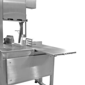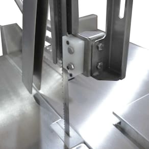 - Duas vezes mais rápida que a concorrência: Velocidade da lâmina de 900 m/min e lâmina com 4 dentes por polegada para mais produção e cortes mais leves e rápidos; - Tensionador da lâmina com mola, garante a tensão correta e aumenta a vida útil da lâmina; - Produzida inteiramente em aço inox; - Estrutura reforçada; - Reguladores e empurradores robustos; - Ampla mesa e área de corte; - Pés altos e fáceis de limpar; - Melhor proteção contra água da categoria; - Painel eletrônico externo com proteção IP65; - Mesa móvel removível; - Produzidos em conformidade com as especificações da norma NR-12 e do INMETRO.