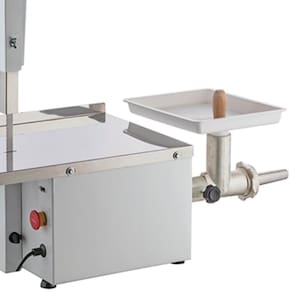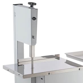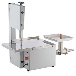 INFORMAÇÕES GERAIS - Carenagem em aço pintura epóxi branca; - Mesa fixa 35 x 45cm; - Lâmina de corte 15,88 x 0,05 x 151 cm; - Altura 75 cm; - Altura útil da serra 17 cm; - Motor monofásico de 1/3 HP bivolt; - Acompanha moedor de carne boca 5, funil para embutidos, socador e lâmina para a serra; - Pés antiderrapantes; - Chave Liga/Desliga com parada de emergência; - Chave Seletora 110 / 220V;