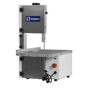 a serra de bancada sebem é uma solução compacta e profissional para uma variedade de cortes. Com sua lâmina de 1,55m, essa serra de fita oferece versatilidade para cortar carne, ossos e congelados. Sua estrutura é robusta em aço com pintura de alta temperatura na cor branca, garantindo sua durabilidade. Sua porta e mesa são fabricados em aço inox. A mesa de corte com área útil de 35 x 45 cm proporciona estabilidade durante o uso, enquanto a altura de corte de até 17 cm amplia suas possibilidades de trabalho. Equipada com um motor de 1/4 cv bivolt 127/220v , essa serra oferece potência confiável para enfrentar diversos cortes, inclusive ossos. A serra sebem, possui proteção para a lâmina com tamanho regulável, lâmina de 1,55m de fácil reposição