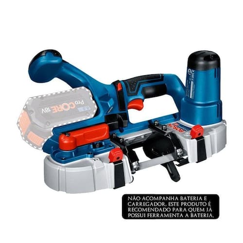 Serra Fita Portatil a Bateria Bosch 18V GCB 18V-63 A serra de fita de 18V sem fio mais compacta e ergonómica da Bosch para um trabalho confortável da lâmina sem chave através do mecanismo de alívio da tensão da lâmina e tampa de proteção com clipes metálicos Curso da lâmina sem vibrações e luz LED para trabalhar mais confortavelmente Especificações: Nº de rotações em vazio: 162 m/min Dimensões das lâminas de serra: 733,0 x 12,7 x 0,4 mm 28-7/8 x 1/2 Profundidade máx. De corte : 63.5 mm Peso sem bateria: 3.3 kg Tensão da bateria: 18 V Peso com bateria incluída :4,3 kg Acompanha: 01 - Serra Fita Portatil a Bateria Bosch 18v GCB 18V-63; 01 - Fita de corte. Compativel com Linha de Baterias Bosch 18V e PROCORE 18V Não acompanha bateria e carregador. Imagens Meramente Ilustrativas Marca: Não Informado