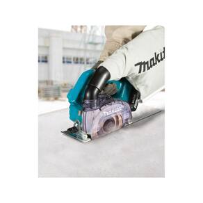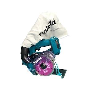 A Serra Mármore à Bateria DCC500 Makita realiza corte chanfrado em 45º, é ajustável a aspirador de pó e coletor.