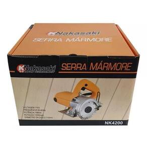 Serra Mármore Corta Piso 1.680W Profissional Serra Mármore é indicada para cortar mármores, granitos, pedras, alvenarias e cerâmica, madeira etc. Fácil acesso a escova de carvão para a substituição rápida. Potente motor de : 1680w 100% rolamentada. - Marca: NAKASAKI JAPAN - Potência: 1.680W - Cor: Amarela - Corte a 0 graus : 40mm - Corte a 45 graus : 21,5mm - Diâmetro do disco: 110mm ou 115mm - Diâmetro do eixo: 20mm - Rotações por minuto: 12.000 rpm - Gatilo Lock Off para maior segurança - Ajuste de Profundidade para um corte preciso e uniforme - Serra Mármore é indicada para cortar mármores, granitos, pedras, alvenarias e cerâmica. - Fácil acesso a escova de carvão para a substituição rápida - 100% Rolamentado - Pode usar disco côncavo - Corta em angulo de 90º - Dupla isolação - Cabo de energia: 2,5 m Marca: Nakazaki