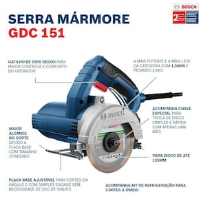 Serra Mármore Bosch TITAN 1.500W GDC 151 5" com Maleta, 1 Discos Diamantado e Kit de Refrigeração BOSCH