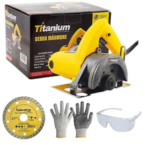 Serra mármore 4.3/8" 1100 watts da Titanium é uma ferramenta elétrica apropriada para construções, pois corta mármore, granito, concreto, alvenaria, telha, tijolo, ardósia, pedras em geral. Possui motor potente, proporcionando ótimo acabamento ao corte. Conta com trava de gatilho, que facilita os trabalhos mais longos. Sua regulagem de profundidade permite ajustes de corte com mais precisão e proporcionando melhor acabamento. Seu interruptor funciona como dispositivo de segurança evitando movimentos involuntários e motor com dupla isolação, diminuindo riscos de acidentes ao usuário. A serra mármore possui cabo ergonômico que facilita seu uso. Cabo de energia de 2 metros. Junto com a Serra mármore acompanha uma chave inglesa.