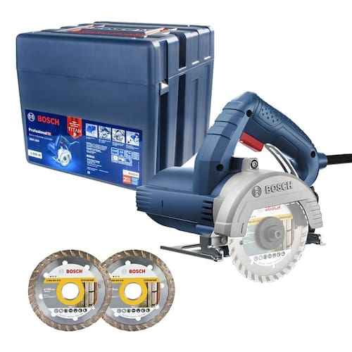 Serra Mármore Titan GDC 150 1500W 220 Volts + Maleta com 2 Discos - 06015486A4000 - BOSCH Descrição:Mais leve: a categoria é mais leve com somente 2,6 kg e possui um design compacto e ergonômico. Elevada visibilidade: placa de base com um maior campo de visibilidade do corte e maior amplitude. Placa de base amovível: remoção fácil e simples da placa de base. Características:- Potência nominal absorvida: 1500 W- Nº de rotações em vazio: 12.000 – 12.200 r.p.m.- Peso: 2,6 kg- Profundidade de corte: 26 mm- Ø do disco: 125 mm- Modo de operação: úmido Valores totais de vibração (Cortar azulejos):- Valor de emissão de vibrações ah: 4 m/s²- Incerteza K: 1,5 m/s² Informações sobre ruídos/vibrações:- Nível de pressão sonora: 95 dB(A)- Nível de potência sonora: 106 dB(A)- Incerteza K: 3 dB Cortar azulejos:- Valor de emissão de vibrações ah: 4 m/s²- Incerteza K: 1,5 m/s² Itens Inclusos:- Chave hexagonal- 2 discos de diamante