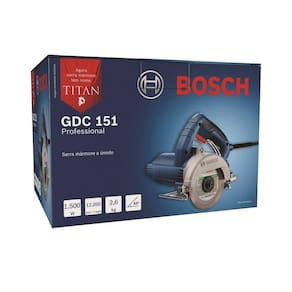 Informações do produto: A Serra Mármore Bosch GDC-151 110v Mais Leve Da Categoria. 2,6Kg Em Um Design Ergonômico E Compacto Com Soft Grip Para Melhor Conforto E Pega. Placa Base Ajustável: Fácil E Simples Remoção Da Placa Base. Corte Em Ângulos: Placa Base Ajustável Em 0º, 15º, 30º E 45º. Ficha Técnica: Descrição: Serra De Mármore GDC 151 Titan + 2 Discos 1500w - Bosch Modelo: GDC 151 Potência E Maior Torque: 1500w Número De Rotações Em Vazio: 12.200 Por Minuto Máxima Capacidade De Corte: 40,3 Mm Em 90 º E 26mm Em 45º Capacidade Do Disco: 125mm Soft Grip:Sim Cortes:Úmido Maior Visibilidade: Placa Base Com Maior Campo De Visibilidade De Corte E Maior Alcance Placa Base Ajustável: Fácil E Simples Remoção Da Placa Base Especificações: Potencia Nominal Consumida: 1500w Numero De Rotações Em Vazio: \Min 12200 Corte De Ângulo Até 45 : Sim Corte Em Guia Paralelo: woo Profundidade Máxima De Corte 0 Disco 105mm: 30,03 Profundidade Máxima De Corte 0 Disco 110mm: 32,8 Profundidade Máxima De Corte 0 Disco 125mm: 40,03 Profundidade Máxima De Corte 45 Disco 105mm: 18,9 Profundidade Máxima De Corte 45 Disco 110mm: 20,7 Profundidade Máxima De Corte 45 Disco 125mm: 26 Dimensões Da Placa-Base Mm: 99,5x152 Diamêtro Do Disco Mínimo Mm: 105 Diamêtro Do Disco Ma Xímo Mm: 125 Máxima Espessura Do Disco Mm: 2 Furo Do Disco : 20m Peso Aproximado: 2,6kg