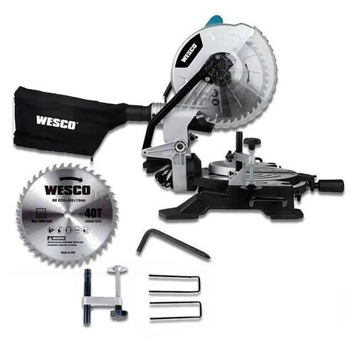 Serra Meia Esquadria 10Pol. 1800W 220V com Disco WS7172 Wesco Serra Meia Esquadria 10Pol. 1800W 220V com Disco WS7172 Wesco as serras de meia esquadria são ferramentas muito úteis paa cortes transversais em peças de madeira, alumínio e outros materiais - Marca: Wesco- Modelo: WS7172- Tensão: 220V - Potência: 1800W- Velocidade sem carga: 5000/min- Tamanho da lâmina: 255mm- Capacidade de ângulo: 0-45º Left- Corte máximo ângulo - 0/45: 14/40mm- Corte máximo ângulo 45/45: 95/40mm- Corte máximo ângulo 0/0: 140/70mm- Corte máximo ângulo 45/0: 95/70mm- Trava do eixo- Alça D com cobertura de borracha- Base de retenção- Proteção móvel transparente- Trava de esquadria de mesa- Escova externa- Saco de poeira- Motor potente de alto desempenho- Mesa de trabalho e base de alumínio de grande porte para garantir um funcionamento estável- Freio elétrico- Corte em vários ângulos- Luz LED- Peso: 14Kg- Garantia: 1 ano Itens Inclusos: - 02 Trilhos de extensão- 01 Braçadeira de trabalho- 01 Bolsa para pó- 01 TCT lâmina- 01 Chave Hexagonal