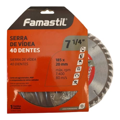 Serra Circular com Pastilhas de Vídea 7 1/4? – 40 Dentes – 185x20 mm – Famastil