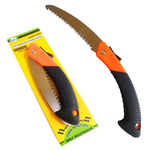 Serrote De Jardinagem Para Poda Dobrável Cabo Emborrachado DESCRIÇÃO DO PRODUTO Serrote Para Poda Dobrável com cabo emborrachado, produto de alta qualidade e durabilidade. CARACTERÍSTICAS : Serrote com lâmina em aço super afiada. : Medida do Serrote 37,5cm. : Medida da lâmina 17cm. : Contém Trava de Segurança. : Lâmina dobrável. Utilizado nas mais diversas situações como corte de galhos, troncos, Canos de pvc e muito mais. Ref: ID-7885C Ean: 7898505892434