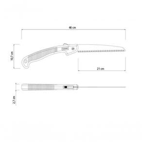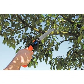 - Perfil dos dentes projetado para cortar nos dois sentidos de movimento: assegura um corte limpo e sem rebarbas. Facilita a cicatrização do galho.