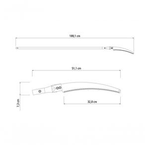 - Perfil dos dentes projetado para cortar nos dois sentidos de movimento: assegura um corte limpo e sem rebarbas. Facilita a cicatrização do galho.