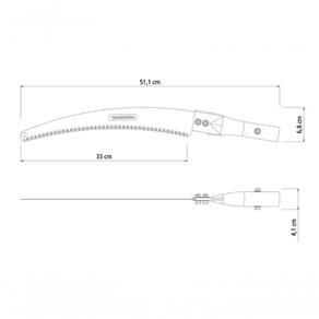 - Perfil dos dentes projetado para cortar nos dois sentidos de movimento: assegura um corte limpo e sem rebarbas. Facilita a cicatrização do galho.