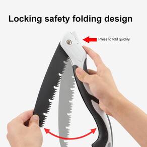 Serrote Dobrável Poda Galhos Lâmina 250mm Lâmina feita em aço manganês, resistente à ferrugem, alta durabilidade e resistência. Equipado com dentes de aresta tripla afiados para serração rápida e eficiente. A serra de poda é dobrável para facilitar o uso, transporte seguro e manuseio, possui trava de segurança que mantém a lâmina aberta durante o trabalho e fechada para armazenamento seguro. Ótimo para jardinagem, poda, aparar, serrar...