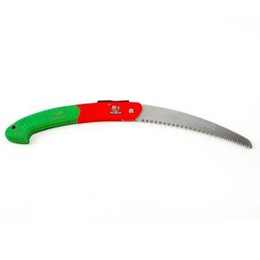 Serrote com lâmina estreita de corte rápido e limpo com revestimento cromado. Dentes temperados dureza = 900HV-950HV ou HRC67-68 que prolonga a afiação 3 vezes mais. Cabo ergonômico e emborrachado anti-derrapante. Sistema de segurança com trava aberto e fechado. Comprimento aberto: 455 mm Fechado: 255 mm Lâmina: 210 mm Peso: 260 gramas Marca: Samurai Fabricado no Japão Ean: 4981049521137