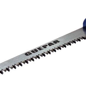 A lâmina deste serrote é feita de aço temperado, o que proporciona maior durabilidade e resistência. Além disso, os dentes são travados, com dupla afiação e têmpera por indução, o que garante um corte limpo e sem rebarbas.