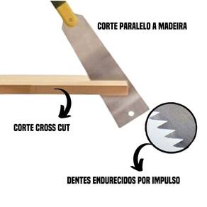 Equipado com dentes especializados para cortes transversais e longitudinais, apresenta troca de lâmina fácil com o inovador botão coin screw knob botão de parafuso de moeda . Seu cabo alongado com 325mm, destaca-se pela resistência proporcionada pelo material ABS, garantindo durabilidade, enquanto a facilidade de moldagem desse material resultou em um design ergonômico. Desse modo, o cabo oferece benefícios como conforto duradouro, reduzindo a fadiga em usos prolongados, e manuseio eficiente devido à sua leveza. Com uma abertura estrategicamente integrada no cabo, proporciona praticidade para armazenamento em ganchos ou suportes, otimizando o espaço na oficina e também permite o armazenamento seguro e evita danos acidentais.