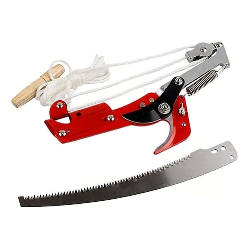 - Sistema de polias duplo para cortar ramos densos com mínimo esforço.