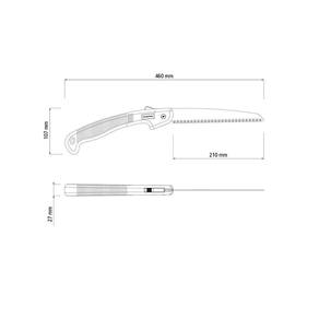 - Perfil dos dentes projetado para cortar nos dois sentidos de movimento: assegura um corte limpo e sem rebarbas. Facilita a cicatrização do galho.
