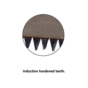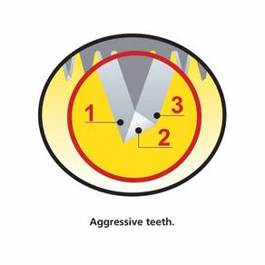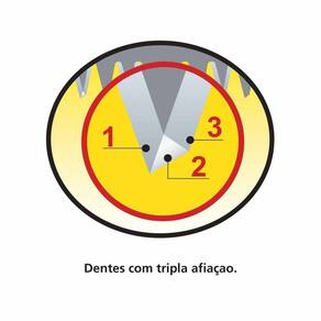 Dentes travados, com tripla afiação e com têmpera por indução.