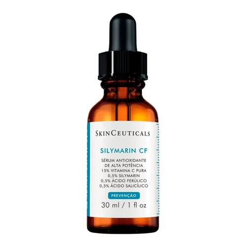 Sérum Antioxidante e Antioleosidade SkinCeuticals Silymarin CF com 30ml PRINCIPIO ATIVO: 15% de Vitmanina C pura (ação antioxidante que neutraliza os danos causados pelos radicais livre) + Ácido Salicílico (reduz poros dilatados e previne a acne) + Ácido Ferúlico (potencializa a ação antioxidante e ajuda a estabiliza a vit. C pura) + Silymarin ( Antioxidante que atua na inflamação da pele oleosa). Silymarin é o antioxidante perfeito para quem tem pele oleosa e acneica, com 15% de vit C pura, além de ativos como ácido salicílico, ácido férulico e o Silymarin, que juntos, irão entregar correção de rugas e linhas finas, redução da oleosidade, prevenindo acne poros dilatados e também vai refinar a textura da pele e uniformizar o tom. MODO DE USO: Na parte da manhã. enxague bem o rosto e limpe-o com o gel de limpeza skinceuticals ou outro agente limpante de sua preferência; Depois de secar, aplique entre 4-5 gotas e espalhe no rosto, pescoço e colo. Lembre-se de utilizar antes de todos os outros produtos de cuidado com a pele.