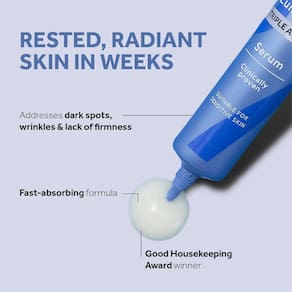 CLINICAMENTE COMPROVADO QUE OFERECE 3 RESULTADOS QUE DESAFIAM O ENVELHECIMENTO**: - As rugas parecem visivelmente reduzidas com este sérum