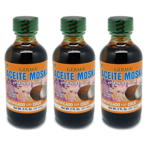 Germa Moska e óleo de coco são ótimos como hidratante, emoliente ou condicionador para os cabelos. Aplique uma pequena porção no cabelo após lavar e enxaguar e deixe como penteado. Para outros usos, consulte um livro de óleos essenciais ou outra fonte . Não substitui nenhuma orientação ou conselho médico. Se você tiver problemas médicos graves, siga as instruções do seu médico. Pacote de 3 produtos com UPC 790933107029. A embalagem e os ingredientes podem variar