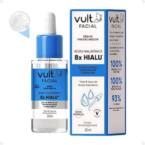O Sérum Preenchedor Ácido Hialurônico 8xHialu de Vult Facial é a solução ideal para ativar uma pele visivelmente mais jovem e hidratada! Sua nova fórmula exclusiva, com 8 tipos de Ácido Hialurônico, atua em todas as camadas da pele, reduzindo rugas e linhas de expressão, melhorando a firmeza e elasticidade, além de prevenir os sinais do envelhecimento.