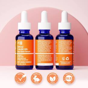 Soro coreano de ácido hialurônico com 20% de vitamina C para cuidados com a pele da SeoulCeuticals + Ácido Ferúlico CE - Potente, antienvelhecimento e anti-rugas. 1 onça