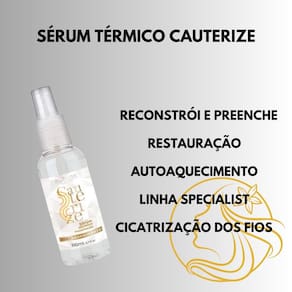 Sérum Térmico Capilar Cauterização Autoaquecimento - 110ml Sérum Térmico - Produto multiuso que se pode usar como finalizador com proteção térmica 230º ou como tratamento pré-shampoo para umectação. Com ação de auto aquecimento, garante diversos benefícios: cabelos 2 vezes mais brilhantes; fios hidratados instantaneamente; reposição da massa capilar. Para o auto aquecimento friccione o produto nas mãos e aplique nos fios. Esta tecnologia permite melhor dos ativos, reparação dos danos e selamento dos fios. Marca: Não Informado