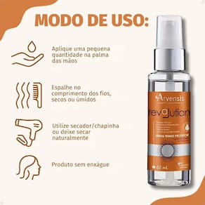 O Sérum Termo Protetor Arvensis Revolution é um finalizador multifuncional desenvolvido para blindar os fios contra os danos causados por fontes de calor, como secador, chapinha e modeladores. Sua fórmula exclusiva combina ativos tecnológicos e silicones especiais, que formam uma película protetora ao redor da fibra capilar, prevenindo quebras, pontas duplas e o ressecamento provocado pelas altas temperaturas. Além da proteção térmica, o sérum oferece efeito antifrizz duradouro, hidratação leve, brilho intenso e toque sedoso. É o aliado ideal para quem faz escova ou usa chapinha com frequência, ajudando a manter os cabelos alinhados, saudáveis e com aparência profissional. Sua textura leve e não oleosa é rapidamente absorvida pelos fios, garantindo um acabamento natural e elegante, sem pesar ou deixar resíduos.