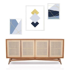 Set 3 quadros geométricos azul e dourado Cor: moldura branca Informações do produto tire todas as suas dúvidas no descritivo abaixo: decoração para quarto, sala, cozinha, escritório, área gourmet e muito mais. Chega de paredes vazias medidas - kit composto por 3 quadros, sendo 2 quadros com 24x33cm e 1 quadro com medida 33x45cm. Material do papel - papel fotográfico brilhante de altíssima resolução acabamento - todos os quadros são acompanhados de uma película de acetato para proteção da imagem. - os quadros são embalados de forma segura com plástico bolha com camada dupla de acordo com o tamanho dos quadros. Garantia - garantia de 3 meses. Meu quadro chegou. Como posso fixá-lo Você precisa apenas de um martelo e um prego, pois os quadros já vão acompanhados de penduradores. Esta é a forma mais indicada. Caso prefira, você pode utilizar uma fita dupla face neste caso, sugerimos de alta qualidade para evitar que descole e seu quadro caia . Como posso limpar meu quadro A limpeza é feita como um móvel comum da sua casa. Apenas um pano seco ou espanador são suficientes para tal