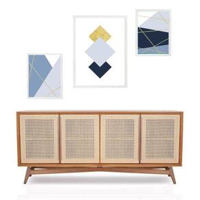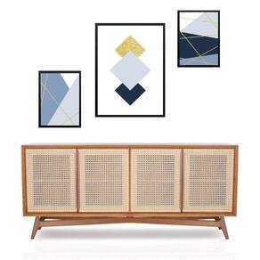 Set 3 quadros geométricos azul e dourado Cor: moldura preta Informações do produto tire todas as suas dúvidas no descritivo abaixo: decoração para quarto, sala, cozinha, escritório, área gourmet e muito mais. Chega de paredes vazias medidas - kit composto por 3 quadros, sendo 2 quadros com 24x33cm e 1 quadro com medida 33x45cm. Material do papel - papel fotográfico brilhante de altíssima resolução acabamento - todos os quadros são acompanhados de uma película de acetato para proteção da imagem. - os quadros são embalados de forma segura com plástico bolha com camada dupla de acordo com o tamanho dos quadros. Garantia - garantia de 3 meses. Meu quadro chegou. Como posso fixá-lo Você precisa apenas de um martelo e um prego, pois os quadros já vão acompanhados de penduradores. Esta é a forma mais indicada. Caso prefira, você pode utilizar uma fita dupla face neste caso, sugerimos de alta qualidade para evitar que descole e seu quadro caia . Como posso limpar meu quadro A limpeza é feita como um móvel comum da sua casa. Apenas um pano seco ou espanador são suficientes para tal