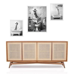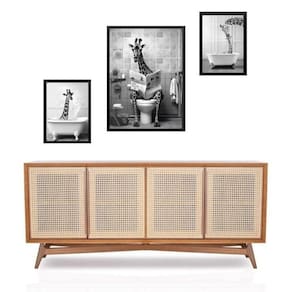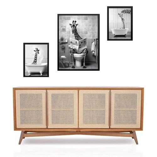 Set 3 quadros girafa no banheiro Cor: moldura branca Informações do produto tire todas as suas dúvidas no descritivo abaixo: decoração para quarto, sala, cozinha, escritório, área gourmet e muito mais. Chega de paredes vazias medidas - kit composto por 3 quadros, sendo 2 quadros com 24x33cm e 1 quadro com medida 33x45cm. Material do papel - papel fotográfico brilhante de altíssima resolução acabamento - todos os quadros são acompanhados de uma película de acetato para proteção da imagem. - os quadros são embalados de forma segura com plástico bolha com camada dupla de acordo com o tamanho dos quadros. Garantia - garantia de 3 meses. Meu quadro chegou. Como posso fixá-lo Você precisa apenas de um martelo e um prego, pois os quadros já vão acompanhados de penduradores. Esta é a forma mais indicada. Caso prefira, você pode utilizar uma fita dupla face neste caso, sugerimos de alta qualidade para evitar que descole e seu quadro caia . Como posso limpar meu quadro A limpeza é feita como um móvel comum da sua casa. Apenas um pano seco ou espanador são suficientes para tal