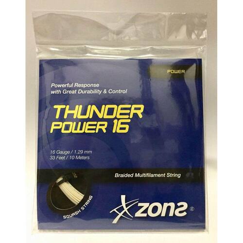 Thunder Power 16 L é uma corda de multifilamento, trançada ligada com resina de elastômero especialmente formulada que proporciona uma resiliência superior, uma resposta viva e um poder adicional. Os envoltórios externos trançados prolongam a vida da corda e oferecem o melhor controle em jogo. Para jogadores avançados que procuram um poderoso e responsivo com controle adicional.