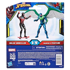 Set de figuras de acción de 10 cm (4 pulgadas) de Miles Morales contra el Buitre de Marvel de la serie Héroe Épico de Spider-Man, juguetes de superhéroes Marvel para niños de 4 años en adelante. - MILES MORALES CONTRA EL BUITRE DE MARVEL: Miles Morales se enfrenta al Buitre de Marvel. - SET DE FIGURAS DE ACCIÓN DE SPIDER-MAN: Figuras de acción de 10 cm (4 pulgadas) de Miles Morales y el Buitre, diseñadas con detalles de los cómics de Marvel. - ACCESORIO DE PATINETA: Incluye una patineta que se fija al pie de la figura de Miles Morales. - JUEGO ARTICULADO: Figuras con 9 puntos de articulación para crear poses de acción geniales. - COMPATIBLE CON LA SERIE HÉROE ÉPICO WORLD OF PLAY: Compatible con la mayoría de accesorios, vehículos y figuras de la serie exclusiva Héroe Épico de Hasbro. - MÁS PARA COLECCIONAR: Completa tu colección de Spider-Man con más figuras, vehículos y juguetes de roles. - REGALOS DE SPIDER-MAN PARA NIÑOS: Juguetes Marvel Spider-Man para niños de 4 años, el regalo perfecto (Se venden por separado. Sujeto a disponibilidad).