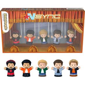 Set de figuras coleccionables Little People Edición Especial NSYNC para adultos y fanáticos, 5 figuras en caja de exhibición - Edición especial conmemorativa de la icónica boy band de los 90s, NSYNC - Incluye a los 5 miembros del grupo: Justin Timberlake, JC Chasez, Chris Kirkpatrick, Joey Fatone y Lance Bass - Cada figura mide más de 2.5 pulgadas de alto y está diseñada a imagen y semejanza de cada artista - ¡Muestra tu fandom! Llega en una caja decorativa con ventana, inspirada en la portada del icónico álbum 'No Strings Attached', con cuerdas reales y detalles ocultos divertidos para que los fanáticos descubran - Para adultos, amantes de la música pop y coleccionistas