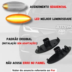 Pisca Seta Sequencial Toyota Rav4 Ano Sinal - Novo com O Pisca Seta Sequencial para Toyota Rav4 é perfeito para quem busca um produto de qualidade e durabilidade. Compatível com os modelos Toyota Rav4 2007 e 2008 que possuem a seta no para-lama, esse pisca de direção lateral possui um acendimento sequencial, trazendo um visual moderno e diferenciado para o seu veículo. Fabricado com materiais de alta qualidade, o Pisca Seta Sequencial Toyota Rav4 possui caixa ABS e luzes de LED, garantindo um desempenho eficiente e resistente. Com potência de 3w a 5w e tensão de 12v, esse pisca oferece uma iluminação âmbar, proporcionando maior segurança durante as manobras e sinalizações. Esse produto é vendido em par, ou seja, inclui o lado direito e o lado esquerdo. Além disso, ele é novo e lacrado, garantindo a qualidade do produto que você está adquirindo. Mesmo sendo de fácil instalação, recomendamos que seja feita por um profissional para garantir um resultado perfeito. Compre com tranquilidade sabendo que você está adquirindo um produto de qualidade. Conte com nossa equipe de atendimento para ajudar no que for necessário antes ou após a compra. Adquira o Pisca Seta Sequencial Toyota Rav4 e deixe o seu veículo ainda mais moderno e seguro. Marca: Não Informado